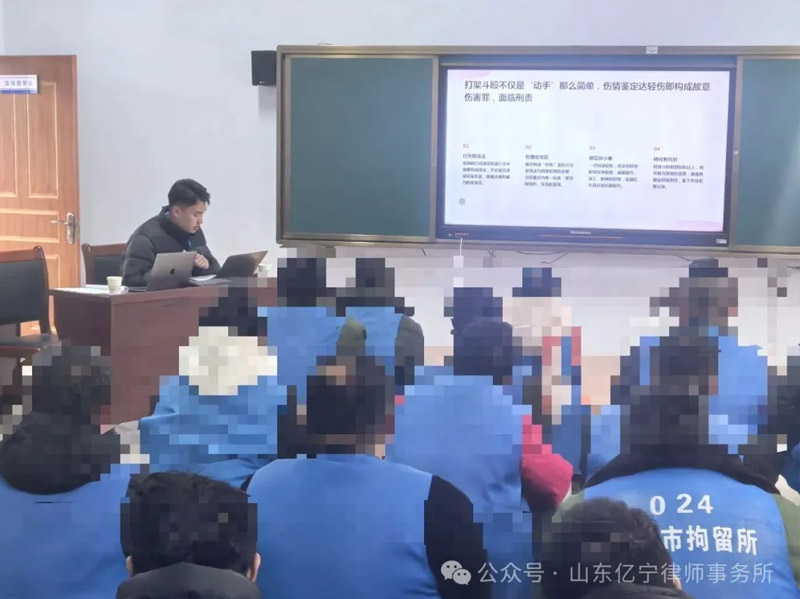 2025年12月23日,针对被拘留人员法律观念淡薄、法律知识欠缺的情况,青州市公安局邀请我所律师于涛、江舒畅到青州市拘留所对被拘留人员开展法律知识宣传教育活动。